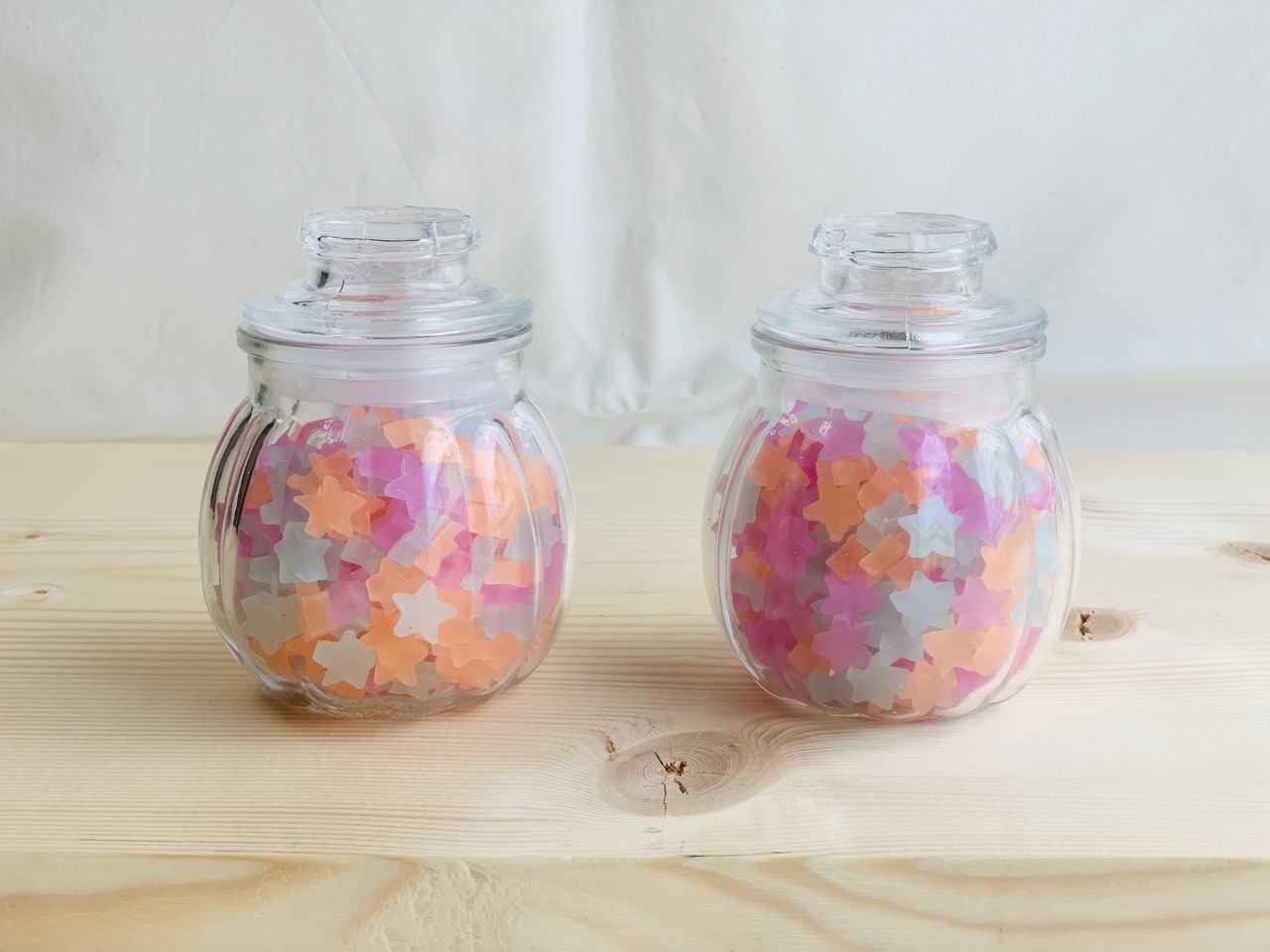 星型にくり抜いたロウをビンに詰めました♩